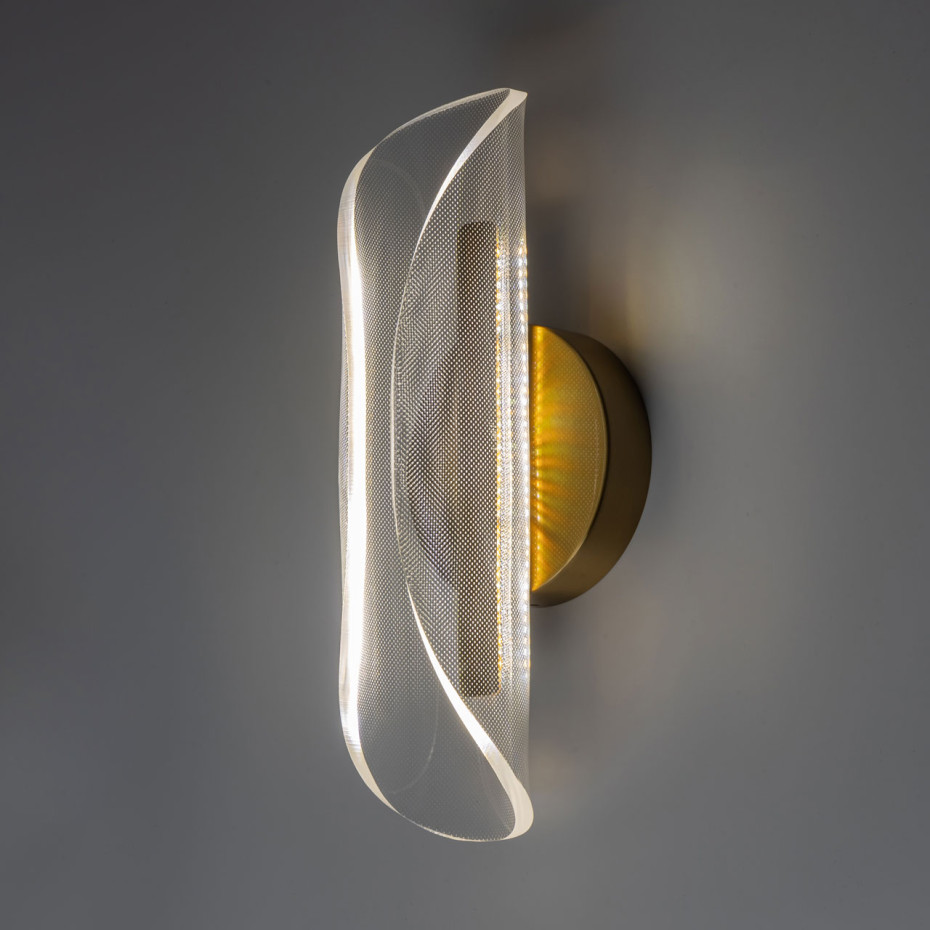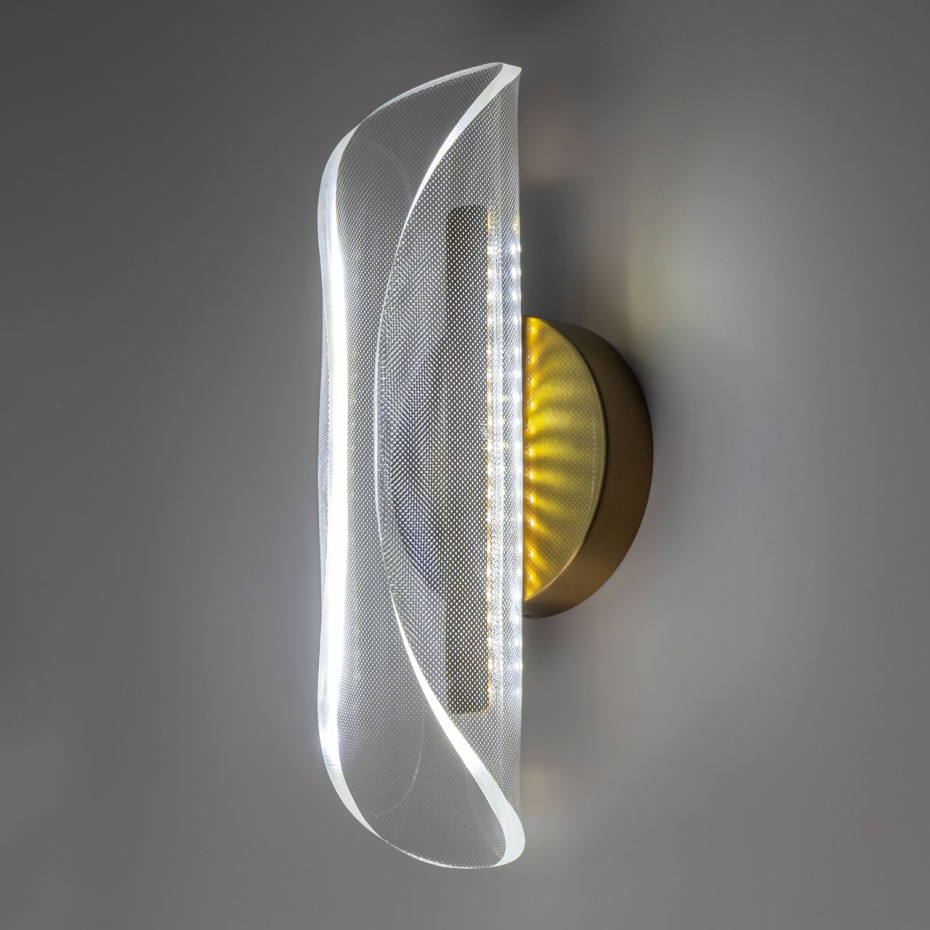 Современное настенное бра в цвете бронзы универсально подойдет в классический и современный интерьеры.Эффектный плафон из прозрачного акрила с точечным рисунком плавно рассеивает свет.Несколько режимов освещения от 3000К до 6000К Возможность диммирования и регулирования интенсивности светового потока.